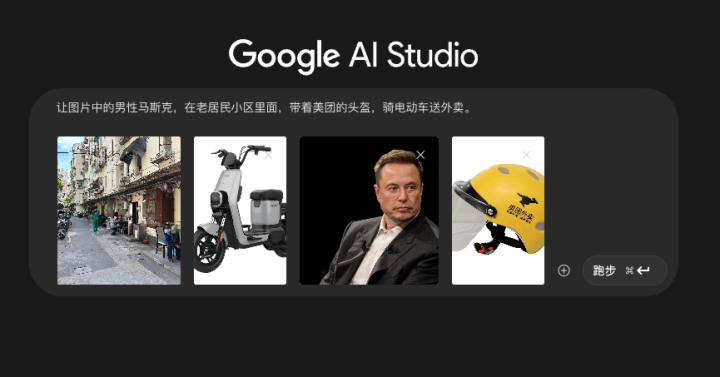 我们可以看见图片中的马斯克带上了某团的头盔,骑着特定的电动车在老巷子里送外卖,人物头像没有变脸,姿势和光线的一致性恰到好处。